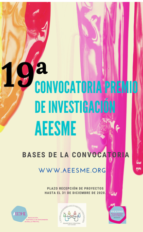 La AEESME hace pública la convocatoria y bases del -XIX PREMIO DE INVESTIGACIÓN AEESME-, recordándoos que el plazo de recepción de proyectos permanecerá abierto hasta el 31 de Diciembre de 2020. Bases Premio de Investigación-2021 AEESME-